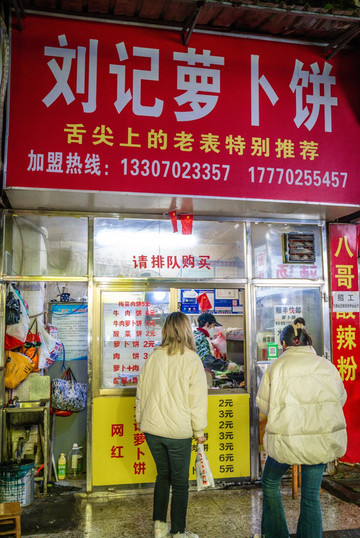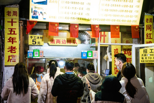 进入步行街中,热闹的气氛就铺面而来,人头耸动,即使是雨夜也不能抵消美食的诱惑,时不时看到逛街的人在街边驻足,有时是一串小吃,有时是一杯奶茶