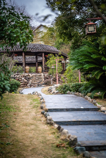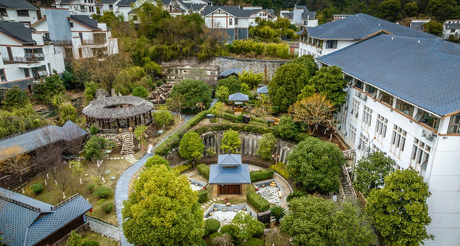 醉石温泉的环境演绎了陶渊明隐逸诗词的意境,设计体现了陶渊明式的田园山水,顺应自然,追求古雅、质朴,让温泉融于森林,层层叠叠、高低错落,行走期间感受颇为写意,小溪、草屋、桃李、远村,让人身置其中,享受“偷得浮生半日闲”的潇洒。