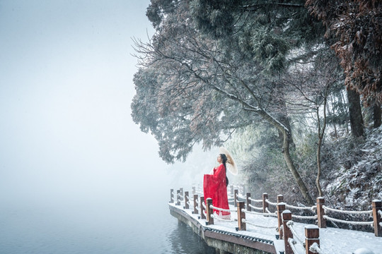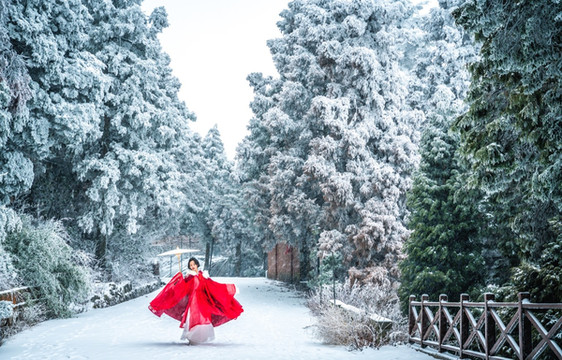 非常幸运,在 九江 游览的这几天,遇上了 庐山 2023年的第一场雪,着红裙,打油伞,一头扎进这漫天的芳菲,胜似人间逍遥游!