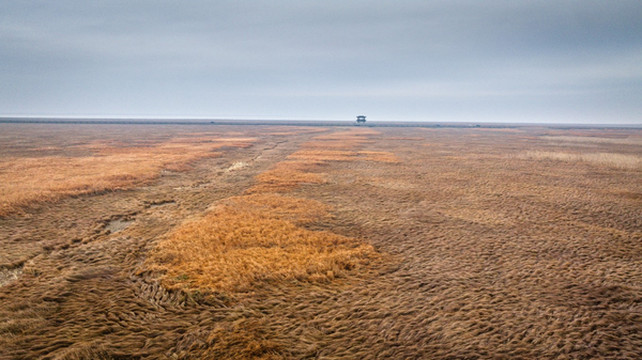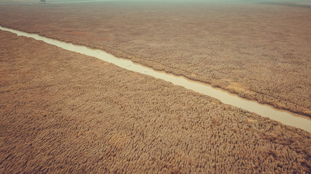 尽管湖水退却,但大片芦苇的中间还是保留了一条河道,供水生鸟类栖息。