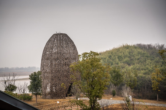 第三处是朱市湖观鸟点,标志是一个外形仿鸟蛋设计的观鸟亭,与自然环境相映成趣,寓意“雏鸟破壳”。亭内一共有三级观鸟平台。