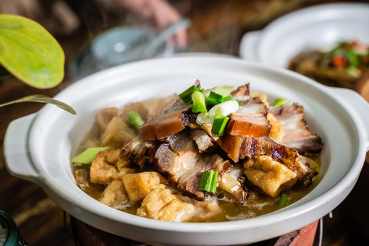 第三道菜,我们要去 九江 的 武宁 县吃, 武宁 炖钵存留了“鼎食文化”的古朴遗风,围桌而食,热气腾腾, 武宁 特色的腊肉、棍子鱼、什锦汤,挨个上来,土灶烧锅,原汁原味,吃得不亦乐乎。