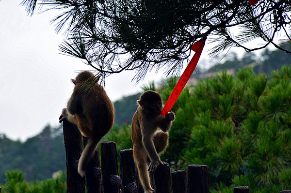 猴子果然调皮,什么都得尝试玩玩,是也想带一条红围脖吗,还是想祈福讨点好吃的。