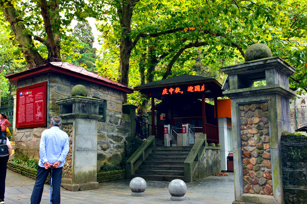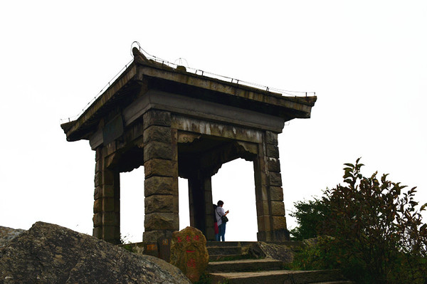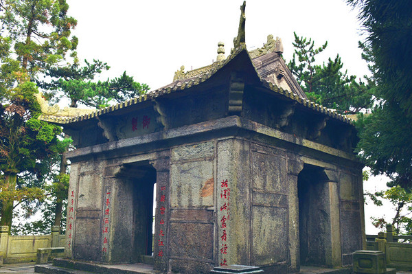 御碑亭。明朝洪武二十六年九月(1393年)朱元璋为了纪念周颠仙等人就在这台上建起了御碑亭。亭中至今还保存着朱元璋的御碑。碑上刻着这位朱皇帝亲自撰写的《周颠仙人传》和《四仙诗》。这块御碑高约4米、宽1.3米、厚0.23米。御碑亭是彷木构歇山顶石亭,平面呈正方形。每边宽5.8米、亭高6米、整座亭子内外厚重,亭子四面无柱子都是石壁。仅在三面有门,一面没有门,在亭子正门外刻有两幅对联:外联是"姑从此处寻踪迹,更有何人告太平"。内联是"四壁云山九江棹,四亭烟雨万壑松"。综合说明了只有顺应民心的历史要求。也反映了老百姓强烈追求太平世界的愿望。