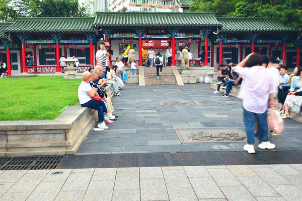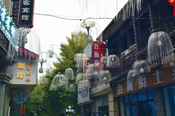 合面街。庐山牯岭镇最具活力和生机的一条街道,不够长但够窄,店铺林立,游人如织,摩肩接踵,霓虹灯流光溢彩,还有垂吊着的彩灯,宛如一场盛大的婚庆现场。