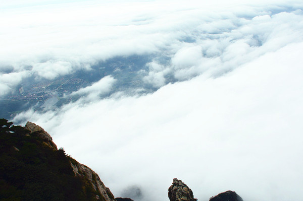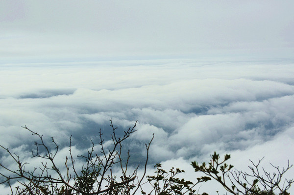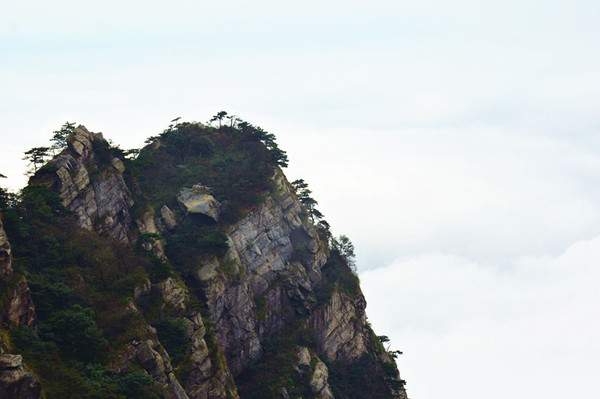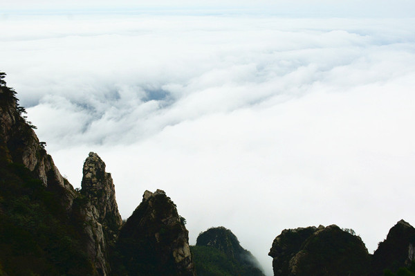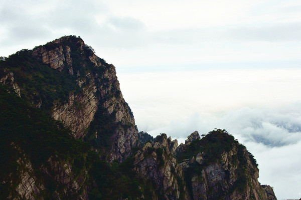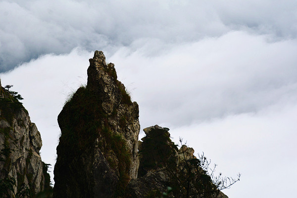 三峰,海拔1355米,比四峰还高一米,下来四峰又上到三峰,还有点累。三峰处俯视下边能看到怪石嶙峋,云海的缘故,更使得那些嶙峋的怪石像从无底的深渊处突兀而起,非常震撼。