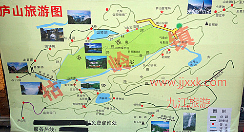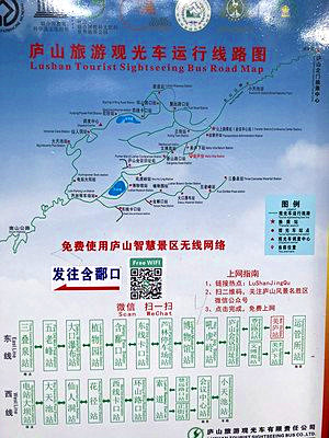 3、景区内交通。庐山景区内有观光车停靠各主要景点,票价80元/人,七天内有效(仅限山上使用);票价100元/人,七天内有效(含上、下山各一次);票价150元/人,一个月内有效(含上、下山各一次)。分东西线路,东线:13个站点,运管所站(始发站)——美庐站——香山路口站——庐山会议旧址站——吼虎岭站——芦林大桥站——芦林停车场站——仰天坪路口站——含鄱口站——植物园站——大口瀑布站——五老峰站——三叠泉站。(往返) 西线:8个站点,会议中心站(始发站)——正街站(去程站)/河南路口站——环山路口站——花径路口站——花径站——仙人洞站——大天池站——电站大坝站。(往返)