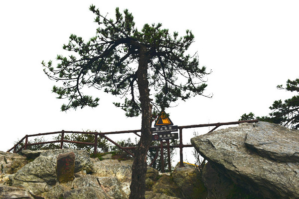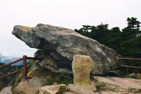 从北门上山的话,来五老峰是从最低处的一峰逐步到最高点五峰的,从三叠泉上来,自然首先是到了会当凌绝顶的五峰,然后依次而下至一峰,看五峰这块石头是不是有点像泰山的那块“拱北石”