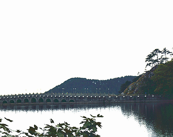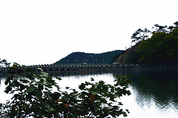 就这样带着我的脚背着包走走走,天渐渐暗了下来,在完全黑之前终于看到了芦林湖,又称东湖。芦林湖四周群山环抱,苍松翠柏,景致优美。此处原是芦草丛生、野兽出没的芦林谷地,介于玉屏、星洲两峰之间。1954年在二峰间筑坝蓄水,次年建成。芦林大桥高30米,桥坝一体,拦水成湖,全湖面积约9万平方米,蓄水120万立方米。