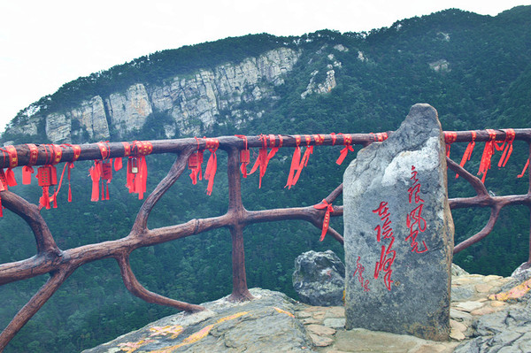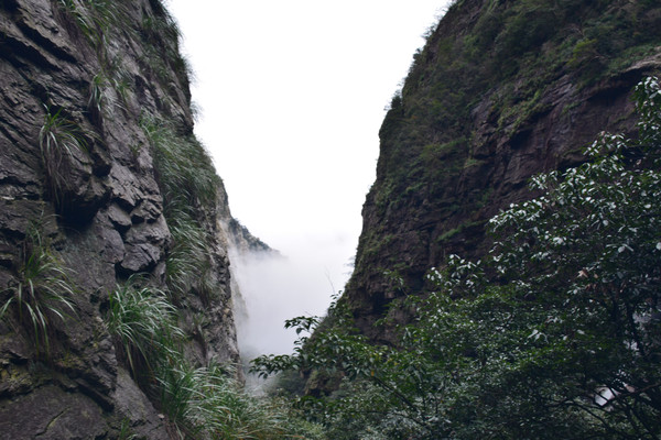 转过山脚,视野突然开阔了好多,原来到了仙人洞,目前就是直面锦绣谷的地方,前面再无障碍,可是云雾依旧,所以前面的下边的一切依然不肯露出真容。