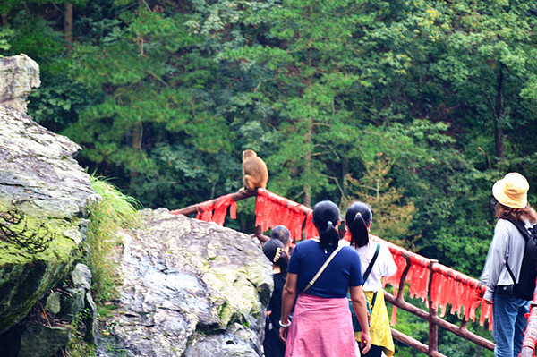 遇见猴子,听说庐山野生猕猴特多,今也算是见识了,不一会儿树林里刷刷的声音,原来就是猴子们上窜下跳,最好不要给投食,但我看到的是,不少游客就是给投食,那些猴子好像不怕人的样子,不过也没遇到抢游客东西的情况发生,大概是给的食物足够它们吃了吧