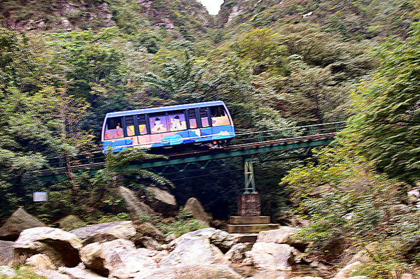 我一如既往的选择了徒步,一路也没有啥突出的景点,缆车也是一路相随,有点像少室山缆车,一路在峡谷盘桓而上,除了能省点体能外也没觉着聊赖,一路溪水相伴,绿树相随。