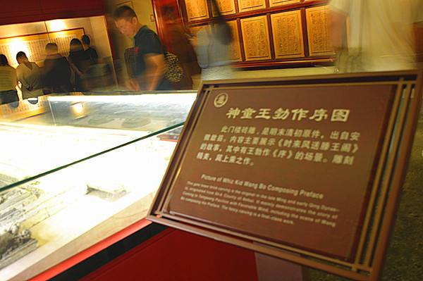 六层是滕王阁的最高游览层。其东、西重檐之间,高悬着2米×5米的苏东坡手书“滕王阁”金匾各一块。其内,虽是一个暗层,但设计者将中厅南北角重檐间的墙体改成了花格窗,故光线极好,与明层无异。