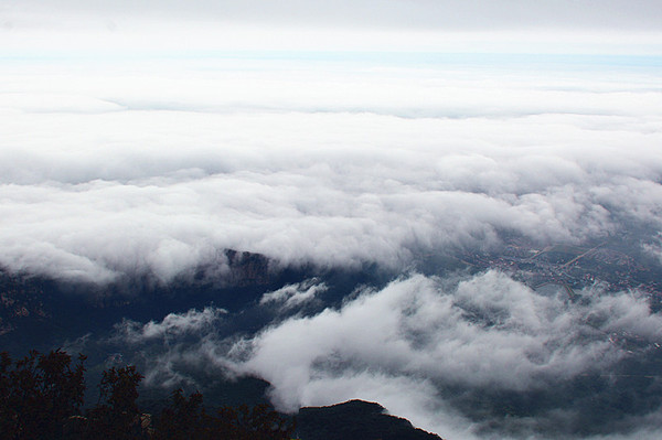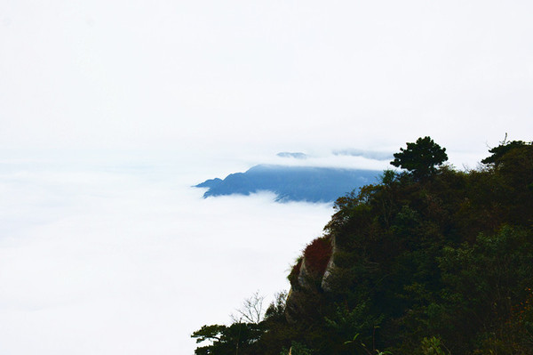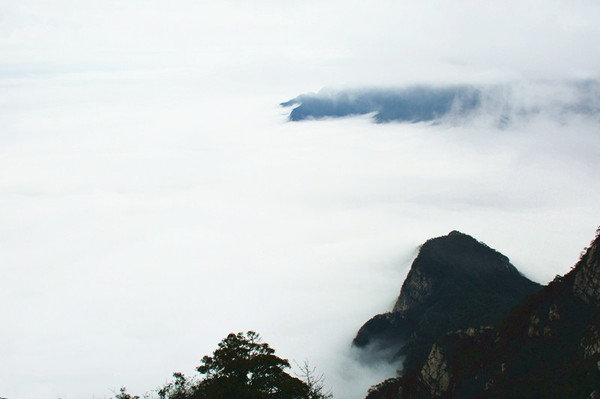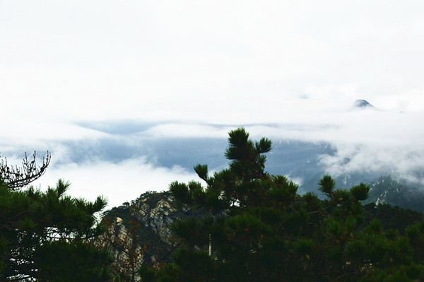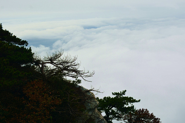 云雾越来越浓,这也正应了那句话——冬天到了春天还会远吗,这不,云雾都下到地面了天空还有云吗,果然好运气在等着我,到了三叠泉是这样的好运气,登上五老峰更是超级好运气。