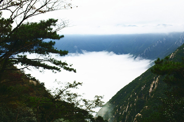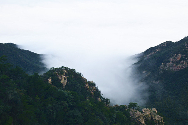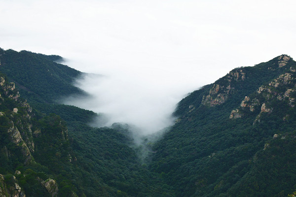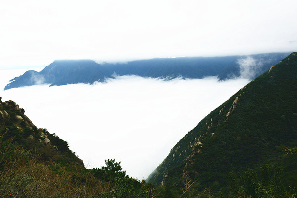 此处视野开阔,但谷底却慢慢升腾起云雾来,既欣喜又担忧,欣喜的是云雾缭绕,令人感觉置身仙境,担忧的是会不会散不了,影响到去龙首崖。
