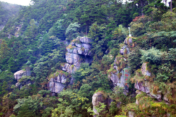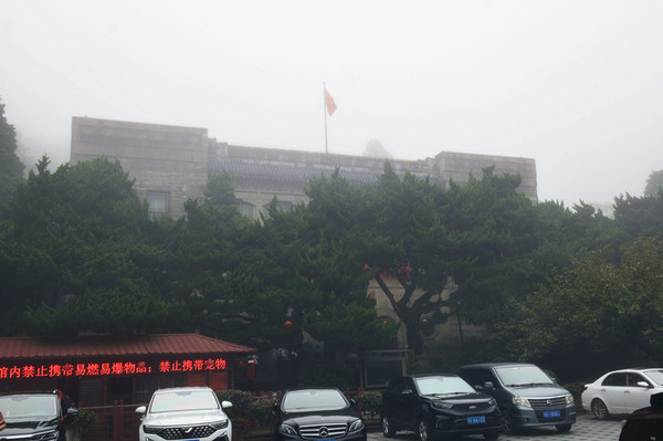 出了仙人洞,雾气更大,原来准备继续南行去龙首崖、石门涧一带,只因雾气太重,脚下朦朦胧胧,大概十米之外都看不到。实在也是奇怪,下到停车场,雾气好似消了不少,但向上张望依然雾蒙蒙啥也看不到。于是再次返回街心公园,主要看看别墅和庐山会议旧址。