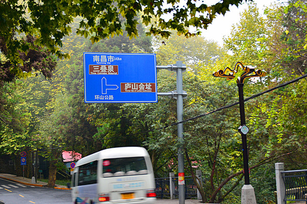 下山的路挺远的,雾气依然非常浓,山路弯弯,坐在车里感觉就是云里雾里穿行,也看不清前方多远的地儿,更看不到周围的环境,只看到道路是宽敞的,道路中间的线是清晰的,也许是因为浓雾的原因,下山竟然用了四十多分钟,终于来到北门--下山车的终点站。回九江市区可以乘坐公交63路,也可以拼的,因为得赶时间去南昌,于是拼的返回,车上坐的两位竟然是山西的两口子,算是邻家,一路畅谈............