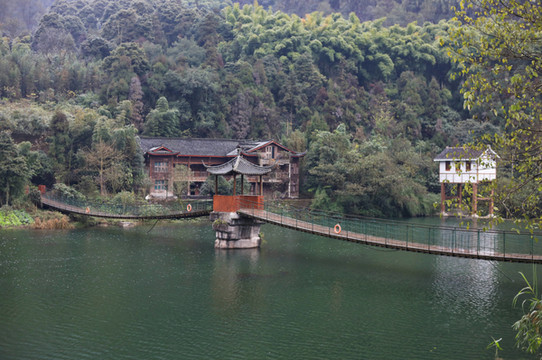 “山水有清音,何必丝与竹”清音阁正是一处清幽之地。阁楼不大,却别有洞天。这里地势陡峭,山水环绕,使得居高临下的清音阁,显现出“天人合一”意境。