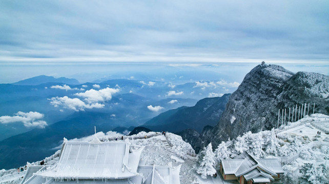 常言道“蜀中有仙山,峨眉貌难匹”。冬日里的峨眉山美得更迷人。徒步登山栈道,踩着松软的雪拾级而上,四周都是银装素裹的雾凇,雪山、佛殿、悬崖、冰湖……处处皆是深邃唯美的景色,令人惊叹不已。