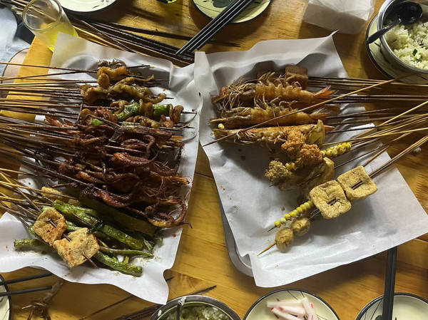 小食推荐:酥肉豆腐脑、肥肠夹饼、乐山钵钵鸡、蛋烘糕、酥肉咔饼、红糖锅盔、狼牙土豆、乐山麻辣烫、叶儿粑、夹丝豆腐干、咔咔