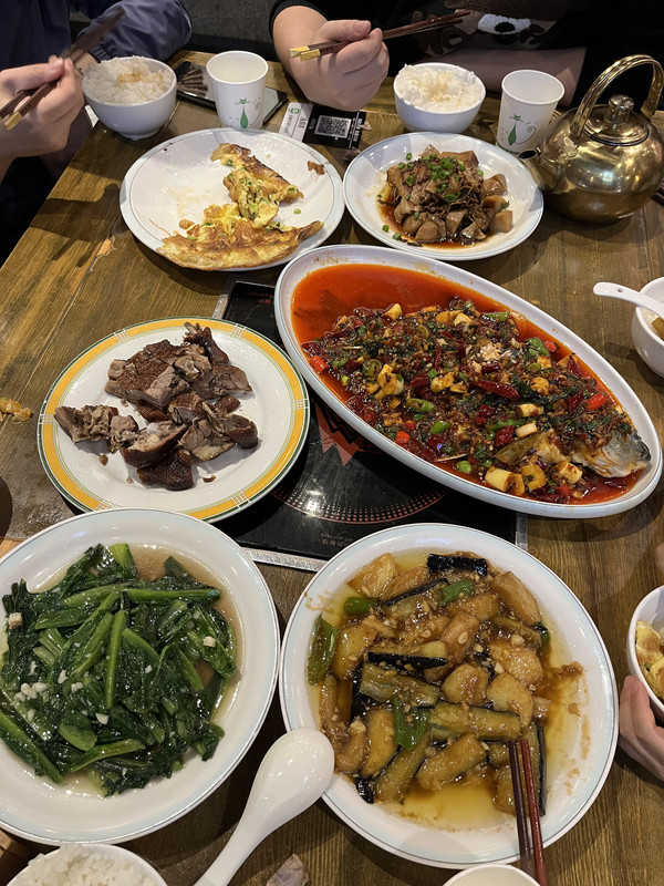 镇江关到成都的最后一班高铁是1730开(也是要提前订),预计1911到成都,到酒店放行李后再步行到春熙路或者太古里找吃的,我们成都第一餐是选择了饕林餐厅,服务和味道还不错,值得推荐。