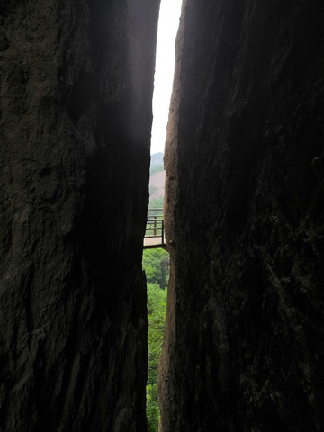 我们的行进路线为:入口-乘景区交通车到锁春洞-千年古樟-老人峰-一线天-将军楼-忠魂石-驼峰观景台-金钟峰-南天一柱-八戒峰-骆驼峰-玻璃栈道-清水塘码头-乘游船到龟峰湖码头-出口。从将军楼开始沿栈道行进。