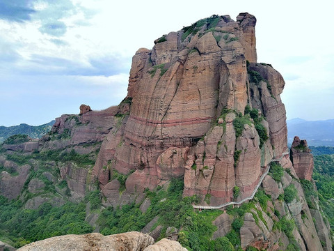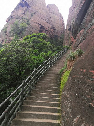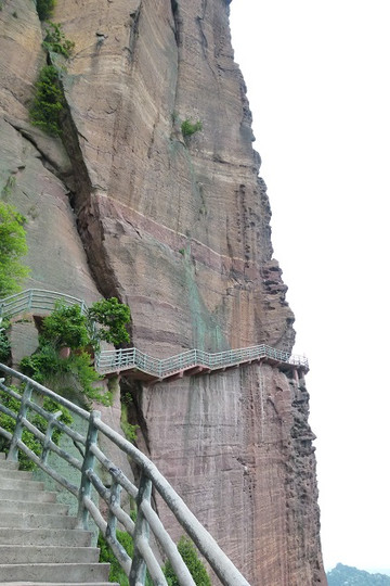 龟峰景区的路线从三道口开始登山,均为栈道,沿栈道蜿蜒而上,还是有点辛苦,但与三清山相比,还是轻松许多。龟峰景区的栈道也是近期修建的,以前游龟峰,到三道口后,即沿好汉坡下行返回,登山的路很艰难。大规模整修后,景区修了从三道口登山的栈道,可以沿栈道行至骆驼峰,而后从骆驼峰下行到游船码头,乘游船返回出口。体力充沛的游客也可以从骆驼峰侧面的栈道步行走回骆驼峰观景台,而后原路返回,需时约3小时。