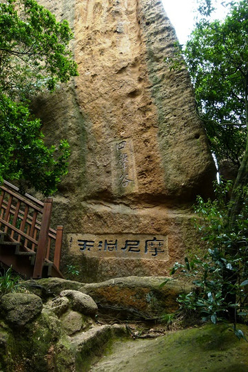 八戒峰。相传东海龙宫盛出美女,好色的八戒途径闻之,色性未泯,偷偷溜到龙宫想调戏龙女,不意被发现,弄得进退维谷,尴尬异常,故躲在岩下露出一幅羞答答的样子。