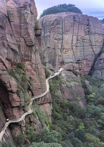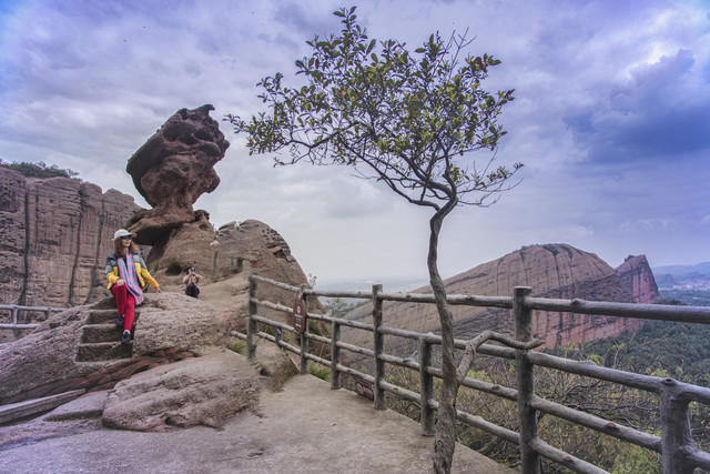 龟峰的山道,上下有度,陡缓交替,又有一个个奇景均匀散落途中,停步观景,也是歇息,忘了山路辛苦,等看完山谷里的十八罗汉和西海岸羞答答藏在山岩旁的猪八戒之后,不知不觉就走到了游览步道最高处,气不喘,腿不软,犹如闲庭信步。回望来路,弯弯曲曲绕山间,何止一万步。