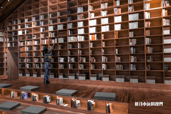 这里是吧台部分的一个书吧,三角形的屋顶让这里看起来更加的开阔,整齐的书架上摆放着各式各样的树,如果没事做倒是可以坐在这里看几本书,当然也是一个拍照不错的地方。