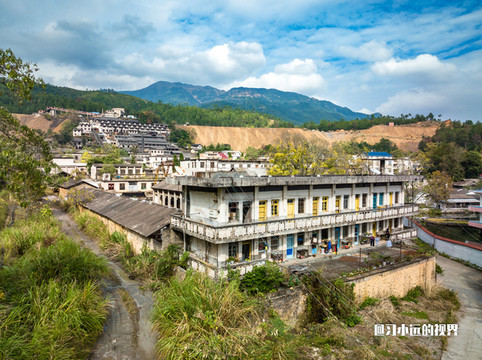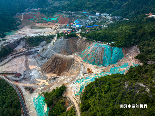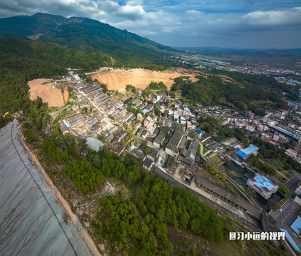 航拍镜头下这个依山而建的矿区还是非常壮观,一边是采矿区,一边是居民区。
