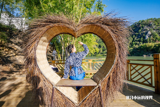 沿着河边的道路可以一直向上走,可以看到曾经的老码头,河边还有人在钓鱼。看着就很悠闲。当然这里也有类似的网红打卡点,鸟巢什么的。