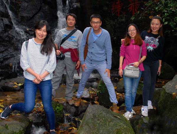 飞瀑前留影(摄影:王黎英)