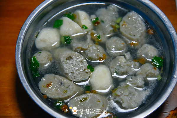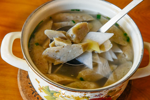 四合一,鱼卷、鱼圆、鱼丸、马加羹四种崇武特色小吃一起做汤,汤很清甜,最爱还是鱼卷