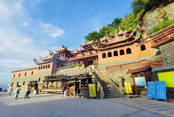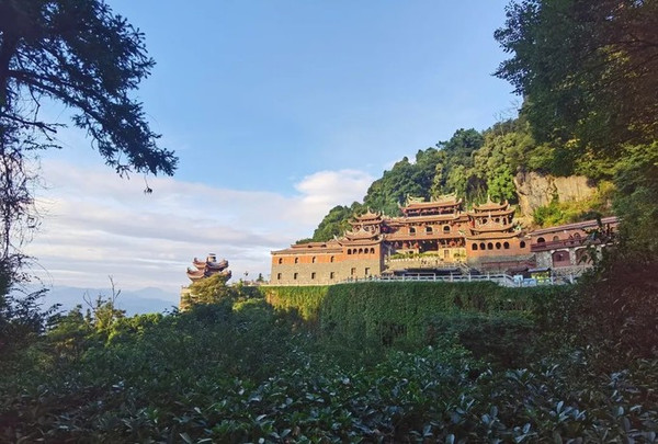 清水岩景区内有众多古迹,国内唯一“帝”字形架构的祖师殿堂便坐落于此。庙宇依山而筑,三层楼阁式建筑,隐在青松翠竹、烟岚缭绕的山顶,典雅壮观。