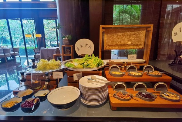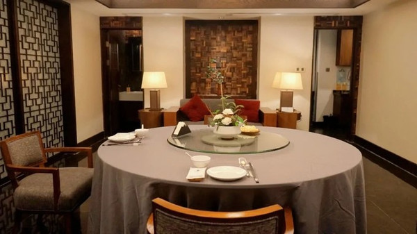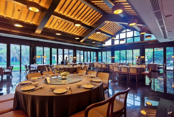 金樽清酒斗十千,玉盘珍馐值万钱。悦泉行馆中餐厅,依水而建,设有三大宴客厅和四小私人间,致力为宾客提供舌尖上的完美体验。