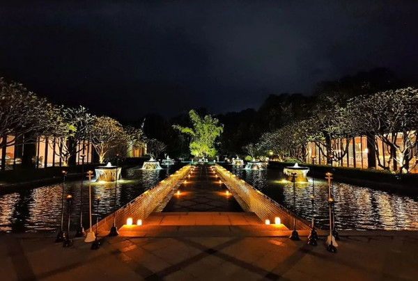 步至行馆,先与一池清泉及青铜莲花相遇。借用自古时文人墨客或书香世家配饰之物“连甲”之名的“连甲池”,以圣洁的莲花为喻,也表“年年顺利、高洁不俗”之意。