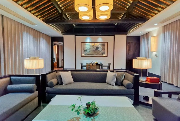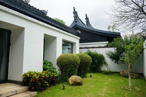隐匿于山环水抱间的悦泉行馆,是由数个单体建筑及外部空间组合衍化而成的合院建筑。设计师结合闽南元素将建筑变得独一无二,别具匠心地在江南特色风景、闽南古厝建筑格局及“燕尾脊”设计的基础上加以徽派黑瓦白墙的改造与升华,融入古朴禅意,将自然景观和人文情怀完美结合。
