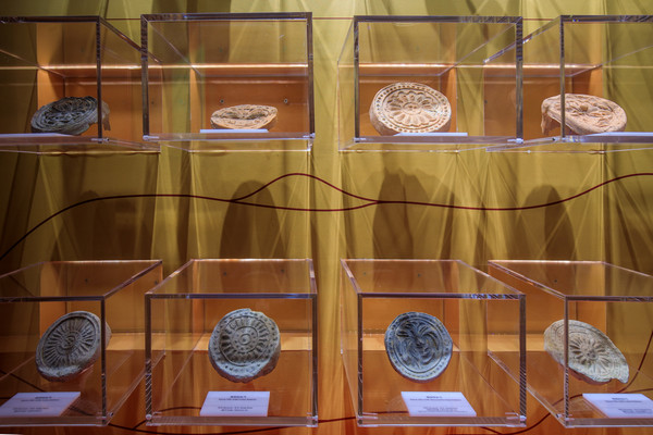 展览中展出了泉州南外宗正司遗址中出土的各类陶瓷器。陈列馆中展出的“官”字砖和瓦、十九瓣莲花纹瓦当、兽面纹瓦当等建筑构件,以及“水陆”“赵”等墨书瓷碗底的墨书内容,佐证了遗址位置和建筑遗址性质。