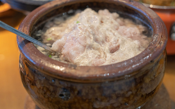 在这家有一个招牌肉夹包是必须要点的,五花肉很厚实,有点微微甜,非常的有嚼劲,包起来吃,糯糯的口感,一点都不腻。