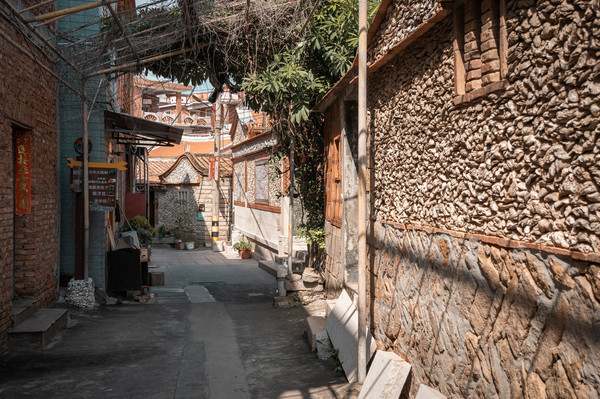 在蟳埔民俗渔村最有看头的蚝壳厝则保存着传统建筑里“红砖白石”的建筑特色。墙体上的蚝壳相互扣砌,堆叠起来如同鱼鳞一般错落有致,蟳埔女乡土民俗风情在福建全省乃至全国是独一无二的,堪称中国民俗文化的“活化石”之一。