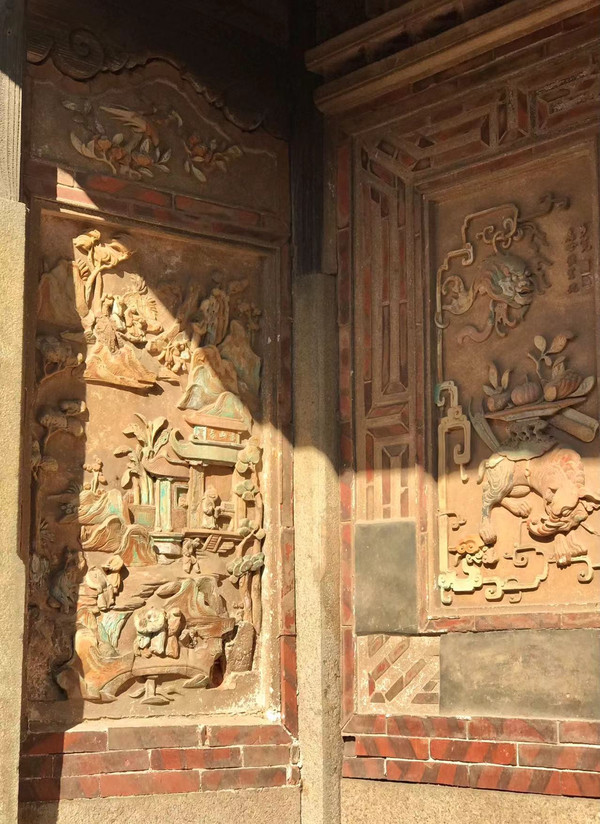 还是带着历史痕迹的砖雕耐看,栩栩如生。