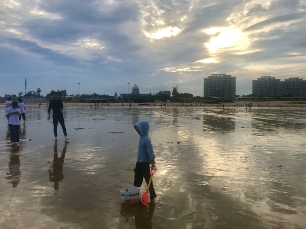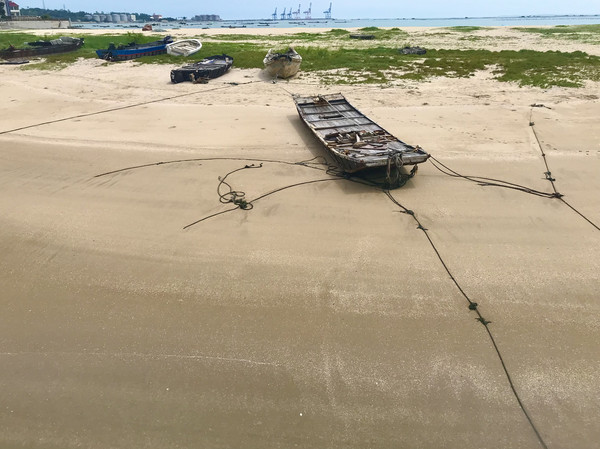 沿着栈桥往外走是沙滩,桥是特意修的,村民却没有在桥头收费,心里想着这里的村民还拧得清。村民说这里时常有人来看海,看的是什么海?我也好奇地要走一走。