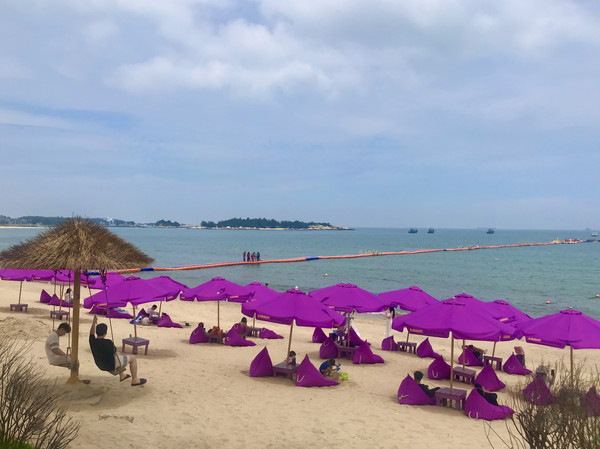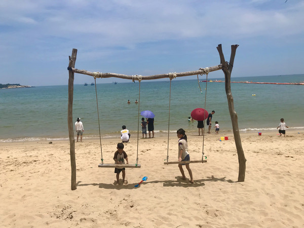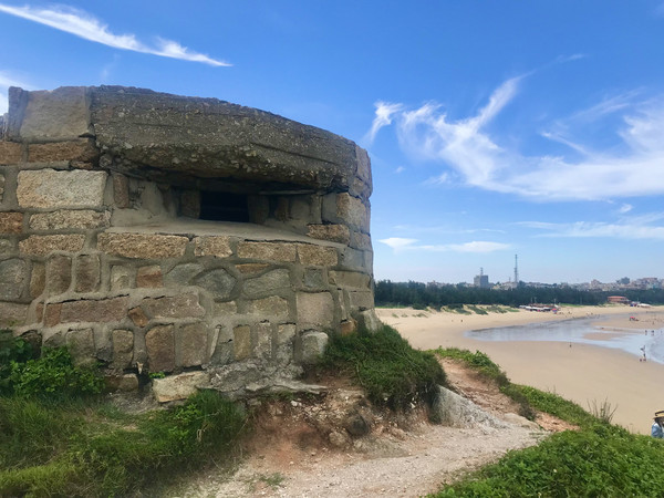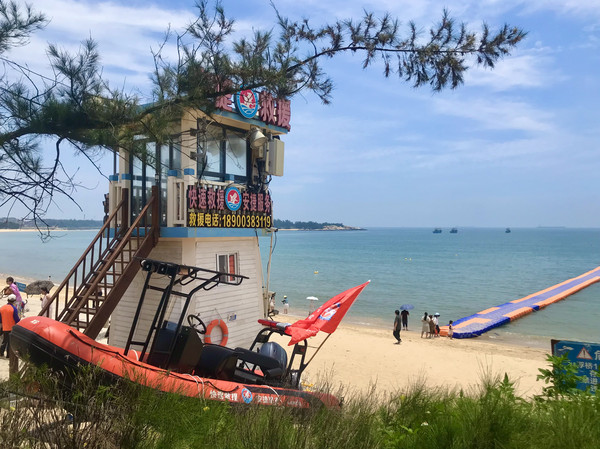 围头村有八二三战地公园,战地文化渔村和一些古迹,时间关系我们跳过了直奔金沙湾。金沙湾的商业比较简陋,只有沙滩上卖游泳、挖沙工具的小贩,和入口处一小片卖烧烤、饮料的地方。