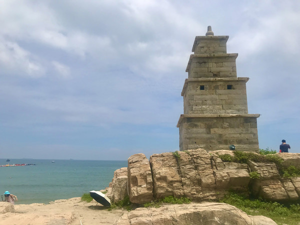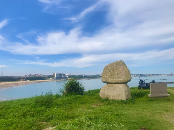 路过深沪湾,看着碑,猜测海底古森林在哪里。