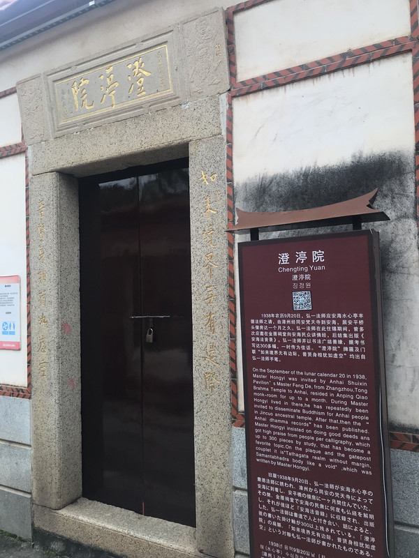 安平桥边上的澄渟院,牌匾和门联出自弘一法师手笔。