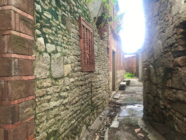 房子是破败了,红砖墙上还留着精美的图案,推想当年小村里也有精致的生活。