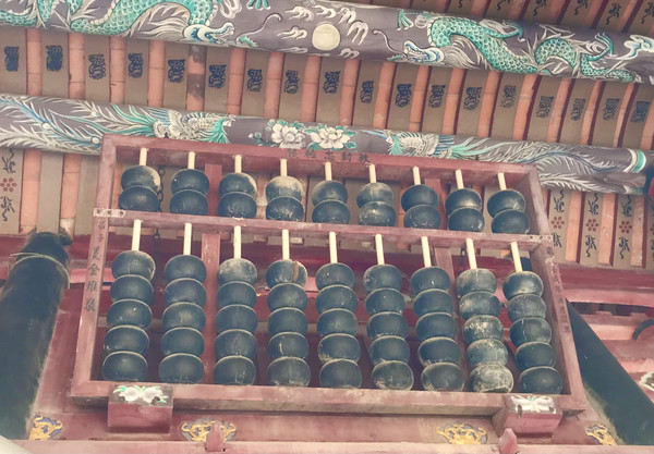 城隍庙内大门顶上挂着的大算盘,或喻天算,顿生敬畏之意。