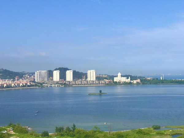 夜宿双海湾,无敌湾景和海景。远处的房子是獭窟岛(半岛),晚上觅食的地方。