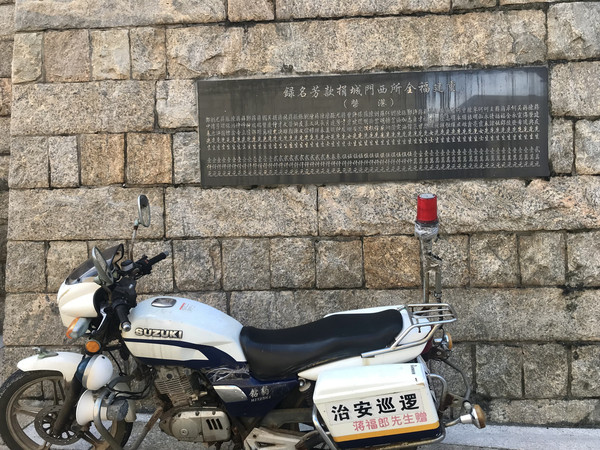 巡警的摩托车也是捐的,古城里处处感受到村民感恩的心。还感觉港币在福全是硬通货。